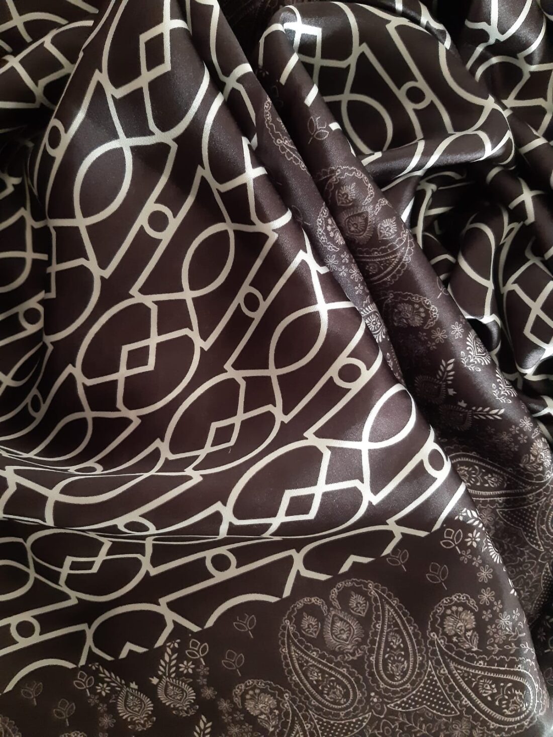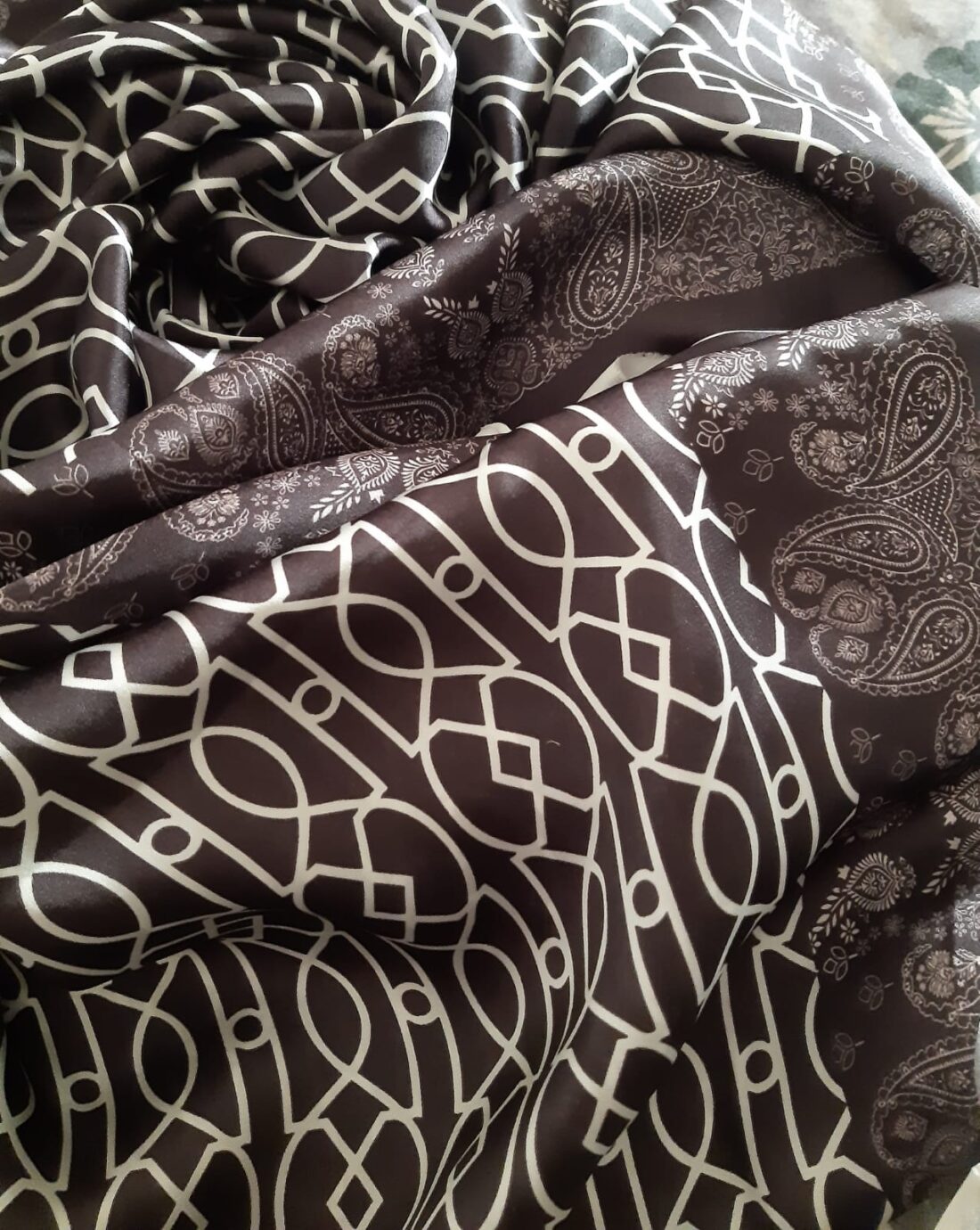 Make a bold style statement with our Black Royal Geometric Beauty Silk Scarf.