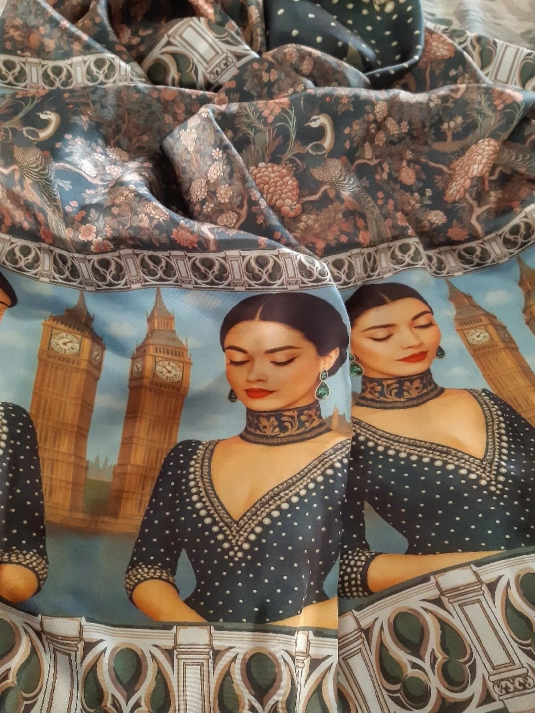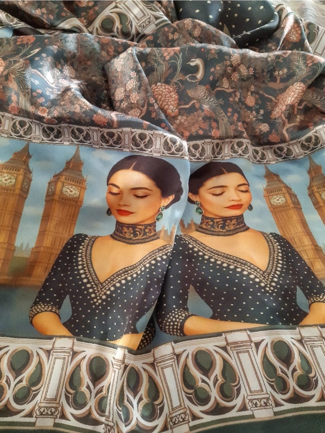 Step into timeless elegance with our Royal Emerald London Beauty Art Silk Scarf.